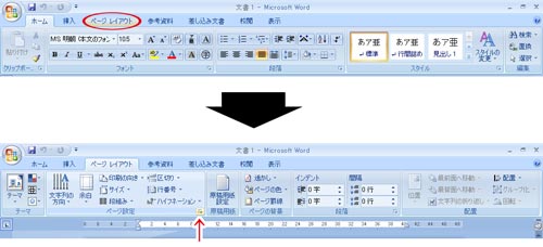 2.「ページレイアウト」タブから「ページ設定」を開きます。