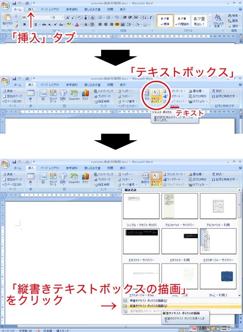 5.「縦書きのテキストボックス」を開きます。